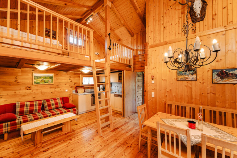 Die Lodge ist gemütlich eingerichtet und bieten allen Komfort, sowie eine Terrasse und Balkon. Die ruhige Lage und die umgebende Natur machen den Aufenthalt besonders erholsam. Die Lodges sind ganzjährig über eine Asphaltstraße mit dem Auto erreichbar, und Parkplätze befinden sich direkt vor Ort.